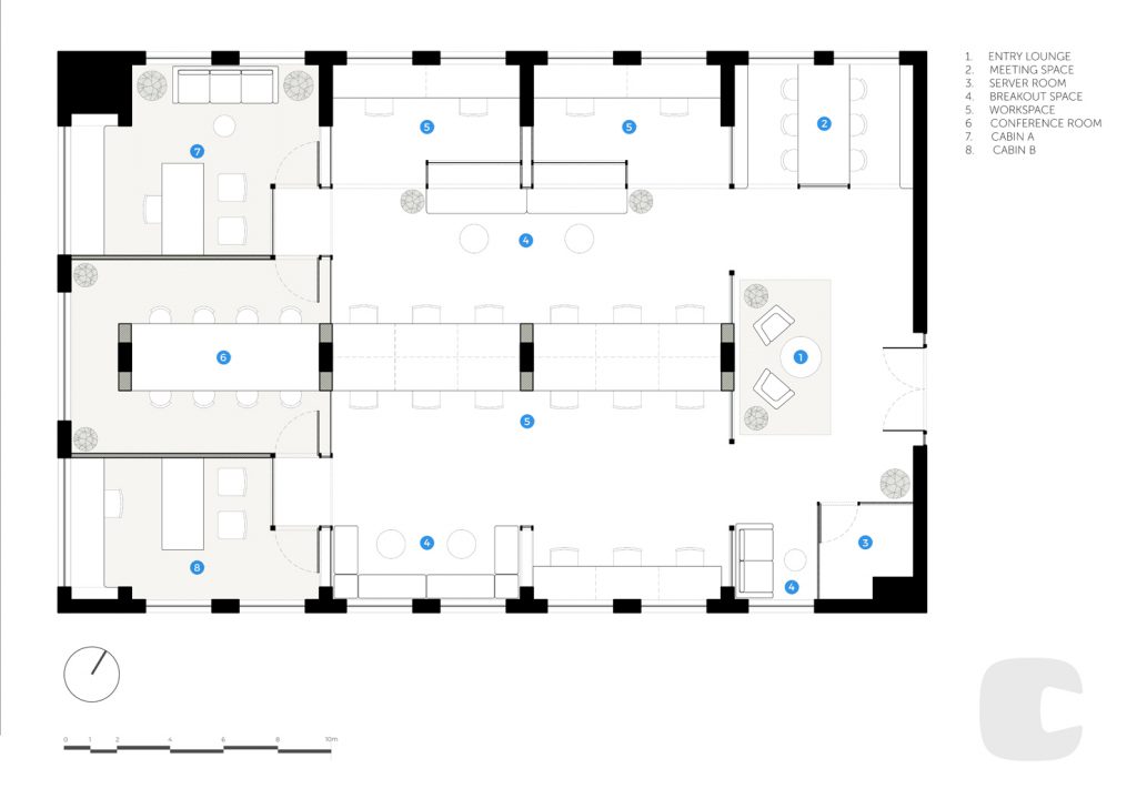 The challenge in this build was to fit in a mid-size office into a small space. Openness with regard to space and interactions were also important factors to consider. We achieved this by creating a mirrored design, based around the central spine, which created a connection between both sides of the office.
