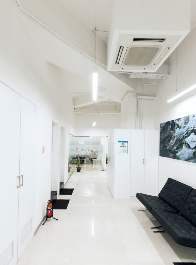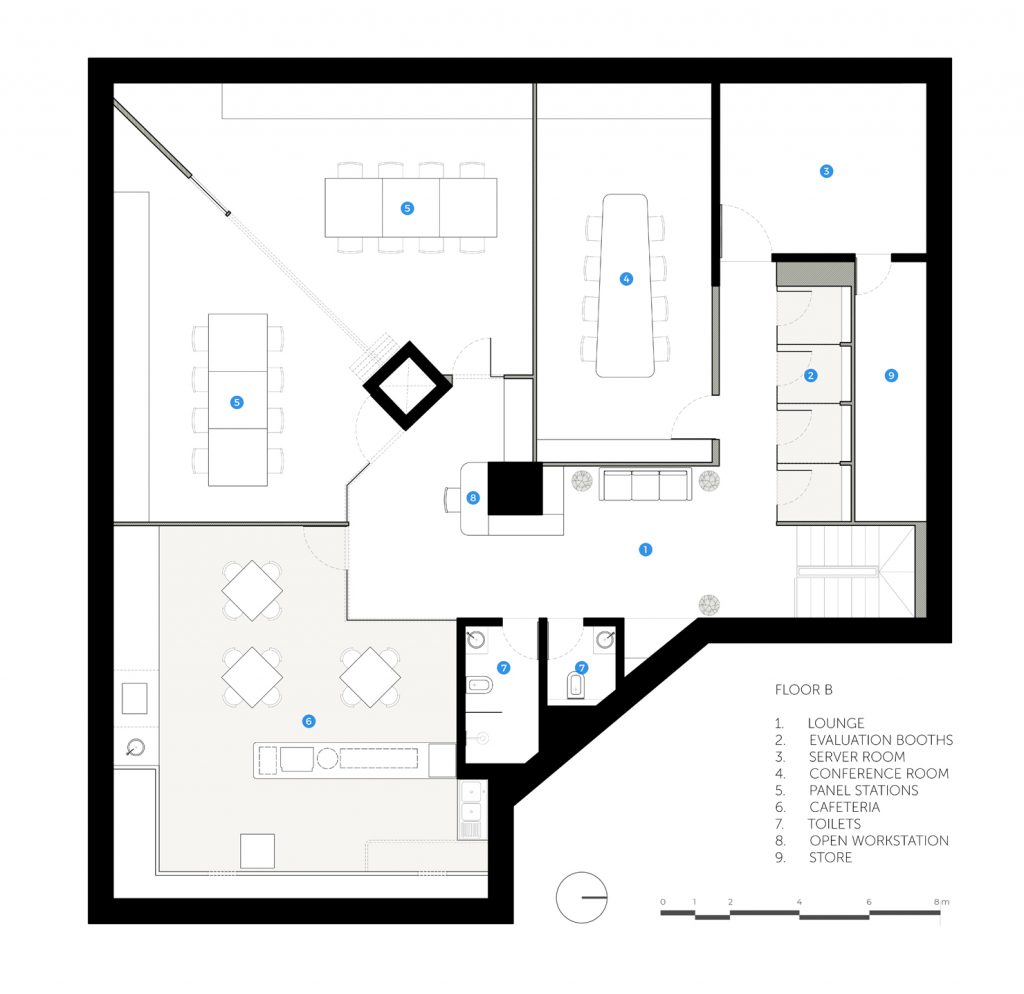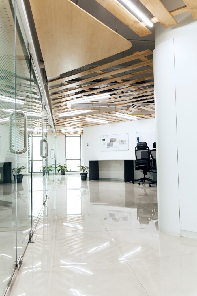 This design process led to a cohesive layout plan, which included as its focus features – monochromatic, minimal spaces. Simple material choices coupled with responsive, dynamic elements and a suspended slat ceiling brought our vision to fruition.